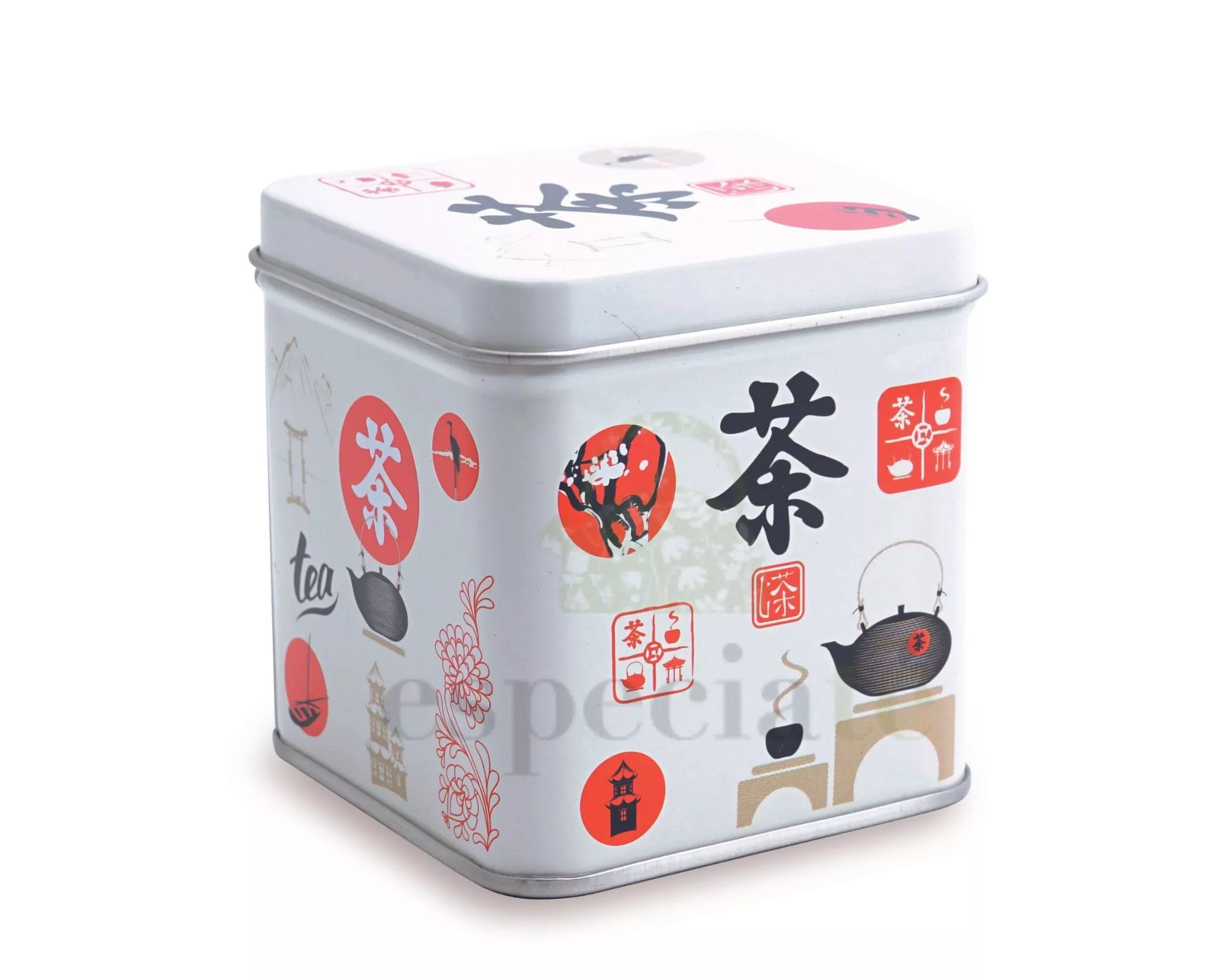 Lata para almacenaje de  e infusiones con motivos orientales.