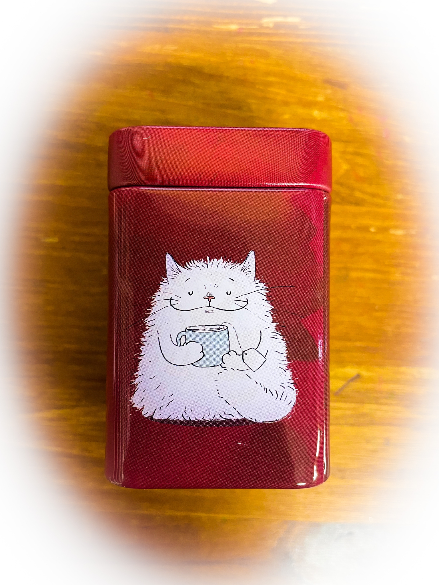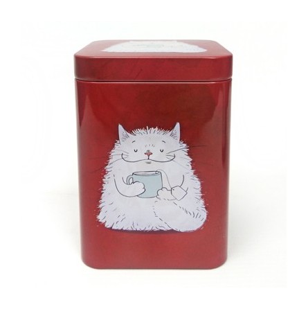 Lata de 25g. con una simpática ilustración de gato. Es la mejor opción para guardar tus tés, infusiones o café con toda su frescura y aroma, puesto que es hermética y no deja pasar la luz.