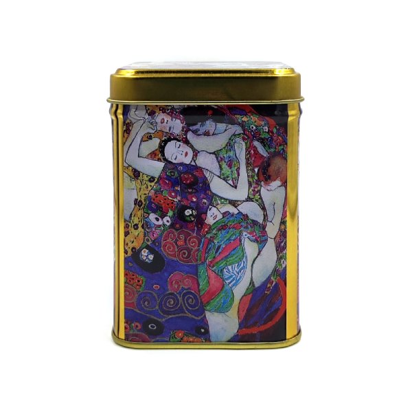| Es una práctica y decorativa lata de metal con capacidad para 25 gramos de té o infusión. Está decorada con un hermoso y elegante dibujo inspirado en el famoso cuadro “La Virgen” del artista Gustav Klimt. El motivo está acabado con un brillo metalizado dorado. Cuenta con una tapa con cierre a presión que garantiza que el contenido queda perfectamente aislado del aire y la luz. Permite mantener los tés o infusiones protegidos para que conserve sus cualidades de sabor y aroma durante más tiempo. |