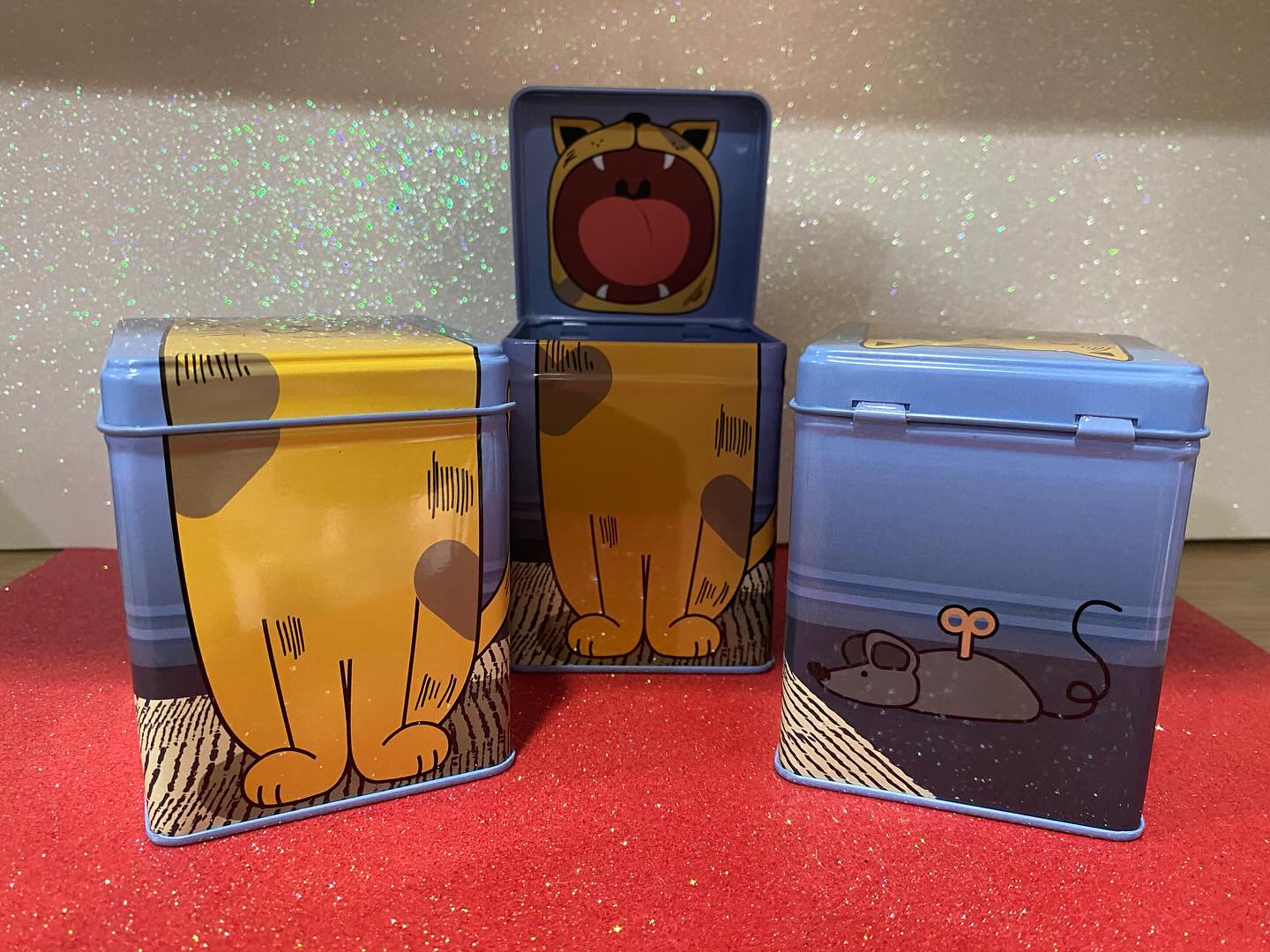 La Lata Murphy es perfecta para los amantes del té y de los gatos, combinando funcionalidad y un diseño lúdico que sacará una sonrisa. Con capacidad para 100 gramos de té, esta lata cuadrada incluye una tapa pintada por debajo, revelando una imagen sorpresa y graciosa: un gatito con la boca abierta al abrirla. Disponible en dos modelos a elegir: uno con el fondo azul y gato marrón y otro con el fondo morado y gato blanco. El precio es por unidad, permitiéndote escoger tu favorito para añadir un toque de diversión a tu espacio de té.