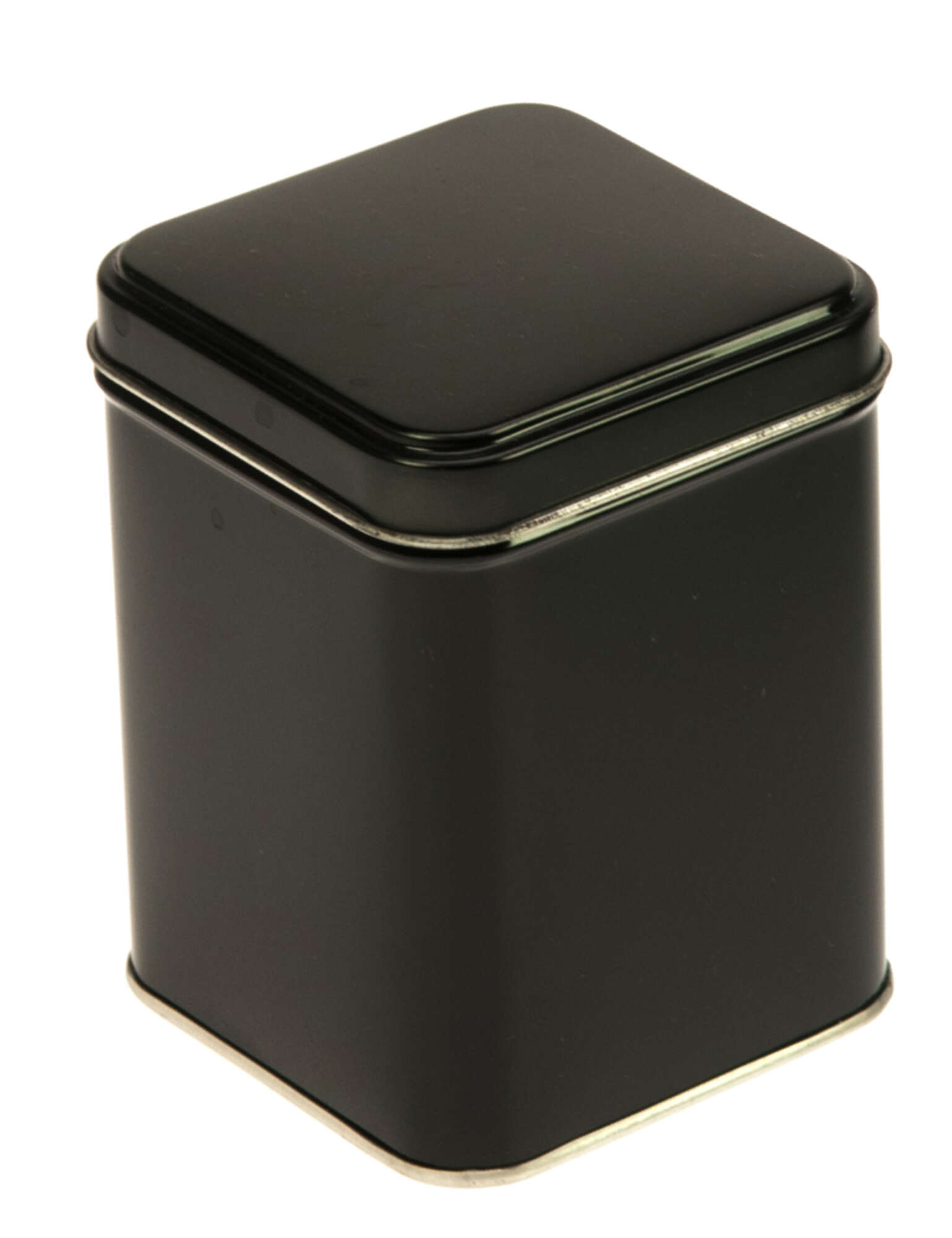 Un envase metálico cuadrado negro con tapa a presión suelta. Sus medidas son perfectas como detalle para regalar en eventos como bodas, congresos o ferias. También para guardar productos a granel, como el té. Una caja metálica cuadrada, lacada en negro con interior en plata, que podrás personalizar con etiqueta a todo color pegada al cuerpo de la lata e incluso con impresión digital en la tapa de la misma. Así harás que tu detalle sea más original.