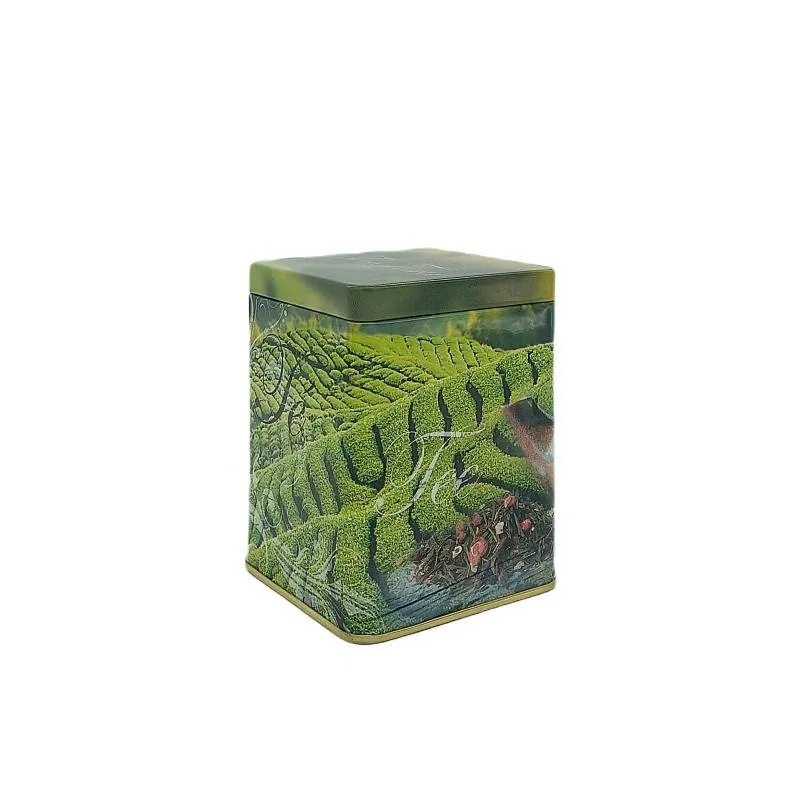 Lata para almacenaje de  e infusiones con campos de tés.